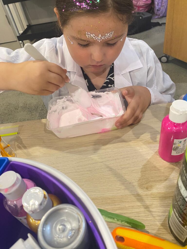 • Face & hair glitter, bubbles, and playful activities for kids